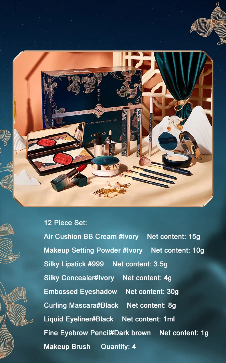 12Pcs Makeup Cosmetic Set Oriental Beauty Love And Rhyme Gift Box Velvet